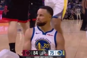 GIF-库里抛投2+0 抖肩庆祝