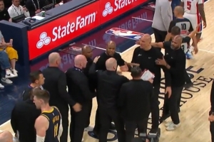 GIF-斯劳森背后撞倒斯图尔特被吹二级恶意直接驱逐,双方助教团小冲突各自吃T