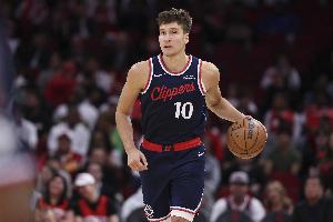 上半场,快船球员博格丹表现还不错,替补上来提供了火力支持,打了12分钟,投篮4中3,三分球3中2,罚球2中1,拿到9分1篮板1助攻的数据。